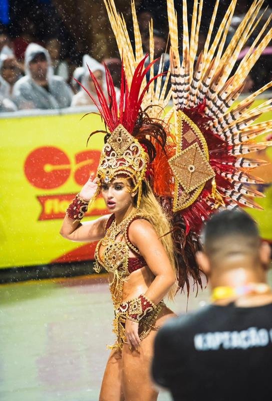 “Eu estou muito emocionada. Desfilar nos 50 anos do Consulado, no Jubileu de Ouro, representando o pandeiro, que é o símbolo da escola já era uma honra imensa. E ser bicampeã ao lado dessa comunidade é algo que eu vou guardar para sempre no coração.”