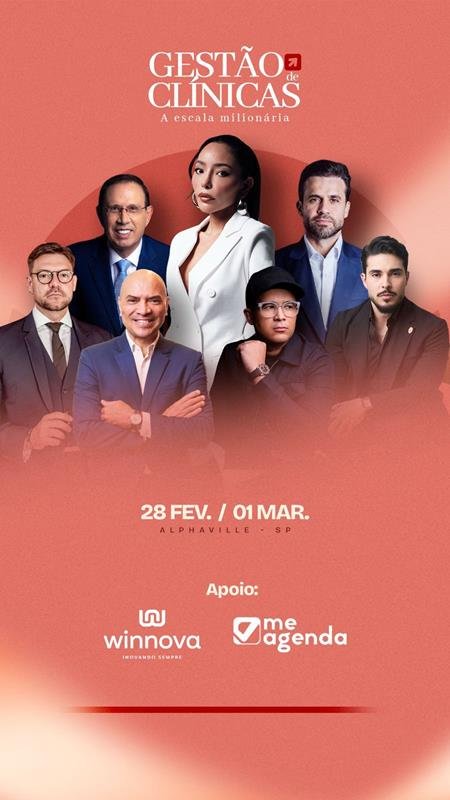 A edição conta com presenças confirmadas de grandes nomes, como Dr. Lucas Luquetti, Pablo Marçal, Dra. Gabriela Aseka, Carlos Wizard, Bruno Avelar, entre outros especialistas e empresários de destaque nacional, tornando o evento uma experiência única de aprendizado, networking e visão de mercado.