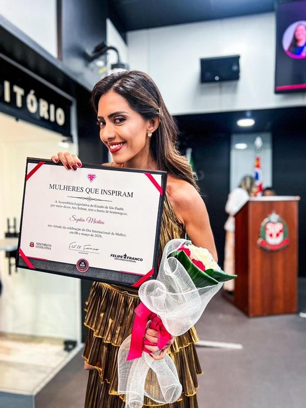 “Receber uma homenagem na Assembleia Legislativa de São Paulo, especialmente em uma iniciativa como o Mulheres que Inspiram, é uma honra que carrego com muita responsabilidade. Mais do que um reconhecimento individual, vejo isso como um reflexo de milhares de mulheres que estão empreendendo, liderando e construindo legado em diferentes áreas. Quando uma mulher avança, ela abre caminho para muitas outras”, declarou Sophia.